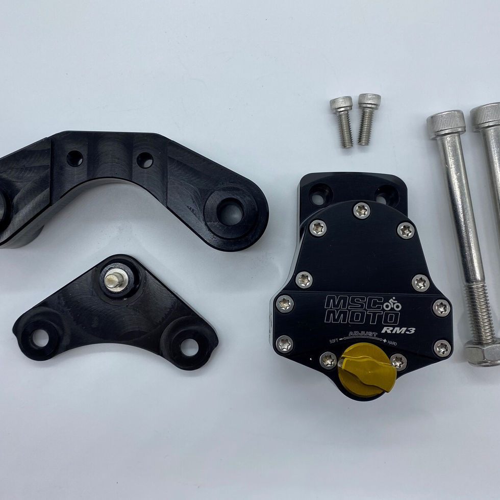 Le retour à l'amortissement central est assuré par nos valves "Active RTC" très efficaces qui permettent au pilote de contre-braquer rapidement, tout comme un amortisseur de direction avec amortissement nul au retour au centre, mais lorsque vous avez besoin d'un amortisseur qui a moins de mouvement au milieu, comme sur les grandes routes droites à grande vitesse ou les pistes, le RM3 vous tiendra avec une sensation positive de stabilité dans vos mains.