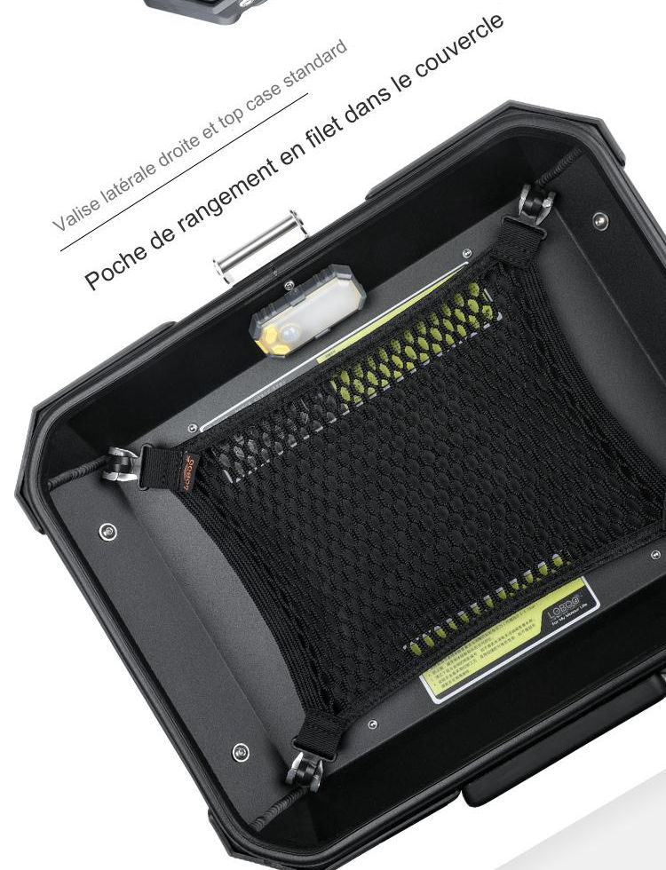 - Détails pratiques : poche intérieure en filet, design anti-collision et une ligne esthétique qui minimise l'espace occupé. Parfait pour les aventures à deux roues dans toutes conditions.