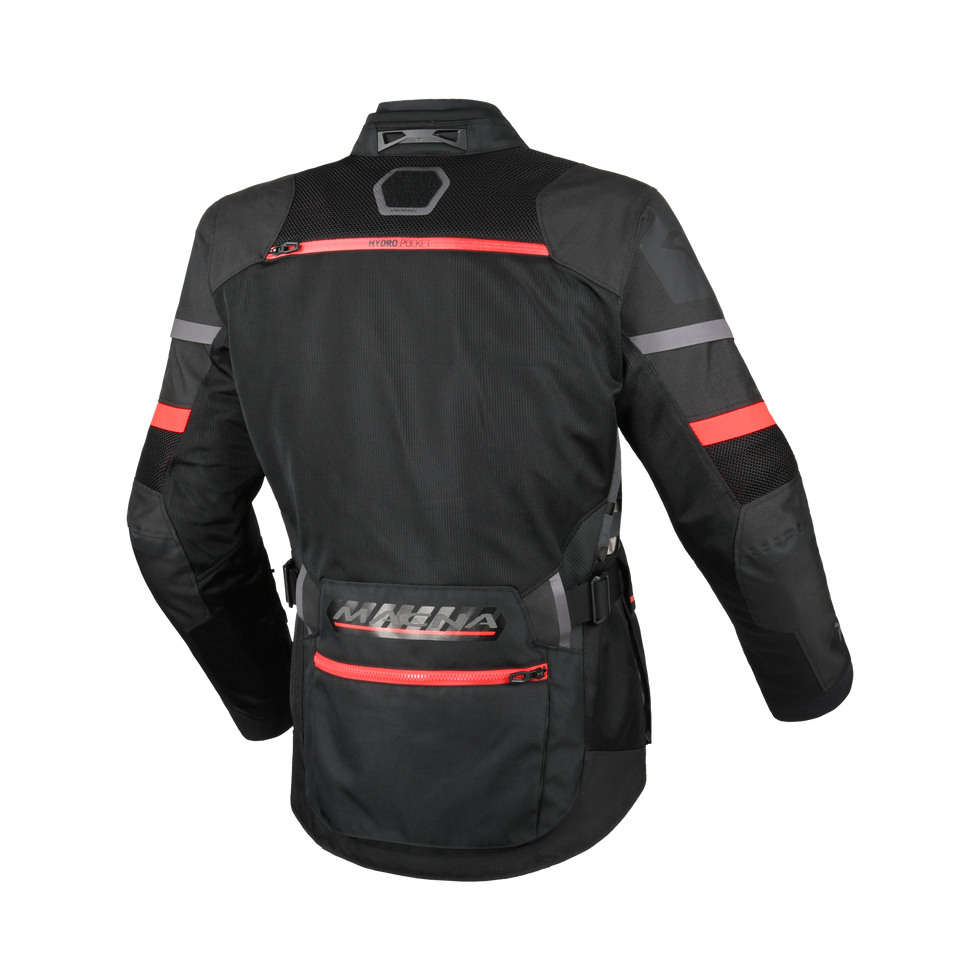 Au dos, vous trouverez une Hydro Pocket qui permet de placer une vessie d'hydratation. L'aisselle gauche est équipée d'une Card Pocket pour minimiser vos pertes de temps aux péages et autres. Au bas de la fermeture éclair principale, nous avons ajouté notre Zip Grip™ pour faciliter la fermeture, même avec des gants.